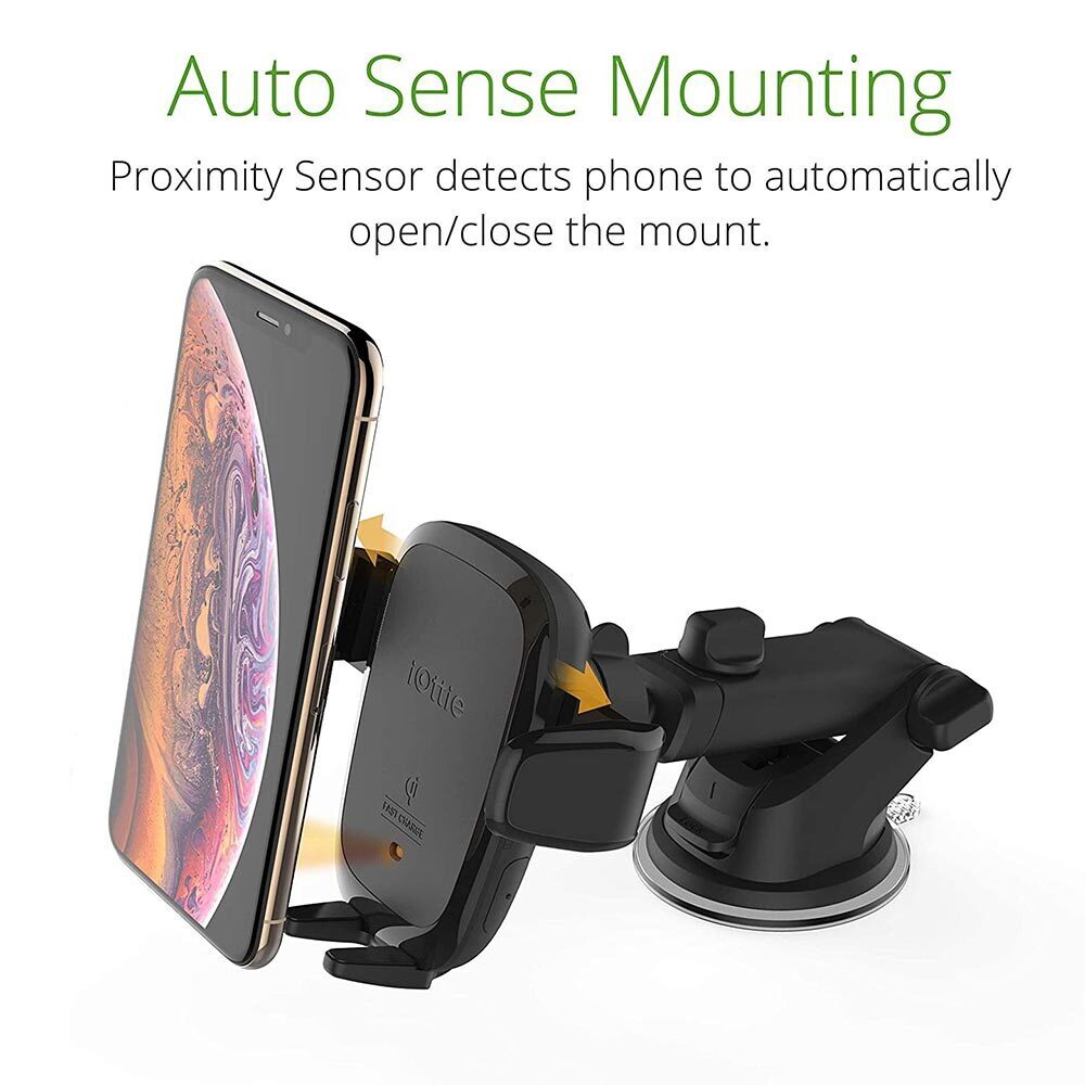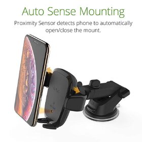 The iOttie Auto Sense is an advanced automatic clamping wireless charging car mount designed to maximize convenience and power on the road. Mount smartphones instantly with the Auto Sense feature that is powered by a proximity sensor. To mount smartphones automatically, simply place the device near the mount cradle to engage a servo motor, and the Arms will automatically close to secure the device. An available Reflective Sticker is included for use on black or matte finish phones and cases to enhance device detection. Once mounted in the cradle, Qi wireless charging technology delivers power to the smartphone automatically without the need for additional charging cables in the car. Retrieve smartphones by simply tapping the two Release Buttons on the side with a quick one-handed motion. The iOttie Auto Sense automatic clamping wireless charging car mount delivers power and convenience to any vehicle for a safer driving experience.