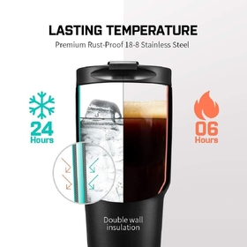 - LARGE CAPACITY : Enjoy your freshly brewed coffee longer anywhere you want: on a long drive, all day in your office, and even at your home. A wide mouth with narrow at the other end design won't have any problem fitting into most car cup holders.