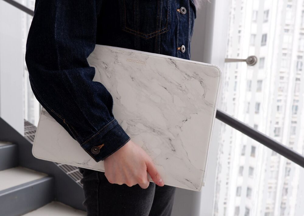 MONOCOZZI Ultra Slim Faux Leather Sleeve For Macbook Pro 14" / Macbook Pro 13" / Macbook Air 13" [Colour:Marble White]