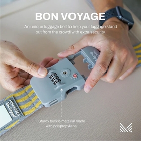 An unique luggage belt to help your luggage stand out from the crowd with extra security. BON VOYAGE Luggage Belt promises to brighten up your holiday with an extra splash of colour.