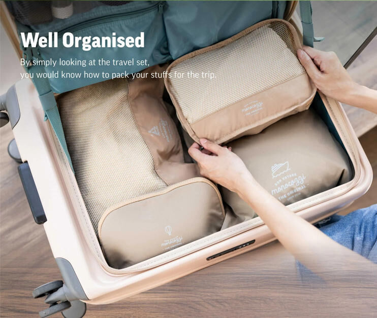 • Well Organized:By simply looking at the travel set you would know how to pack your stuffs for the trip.