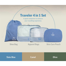4 in 1 Travel Set (Apparel Bags, Shoe Bag, Skin Care Pouch) A splendid companion to elevate yourtravel experience.