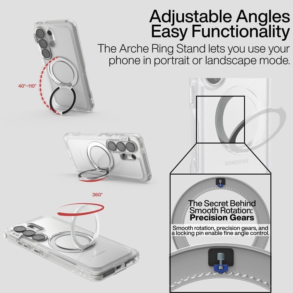 - Adjustable Ring + Stand Function — 360° rotating ring enables effortless angle tuning for streaming, video calls, reading, or selfies. Doubles as a stable stand and a confident finger grip for easier one-hand handling on the go.