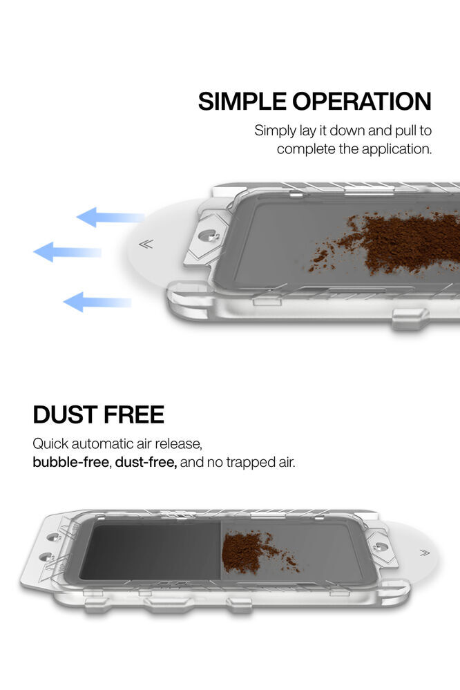 - Dust Free - Quick automatic air release, bubble-free, dust-free and no trapped air.