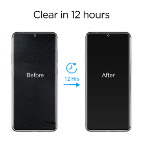 ** Leave the device to dry overnight for absolute transparency. It is normal for bubbles or a rainbow effect to appear during the initial application because they will disappear once dry.