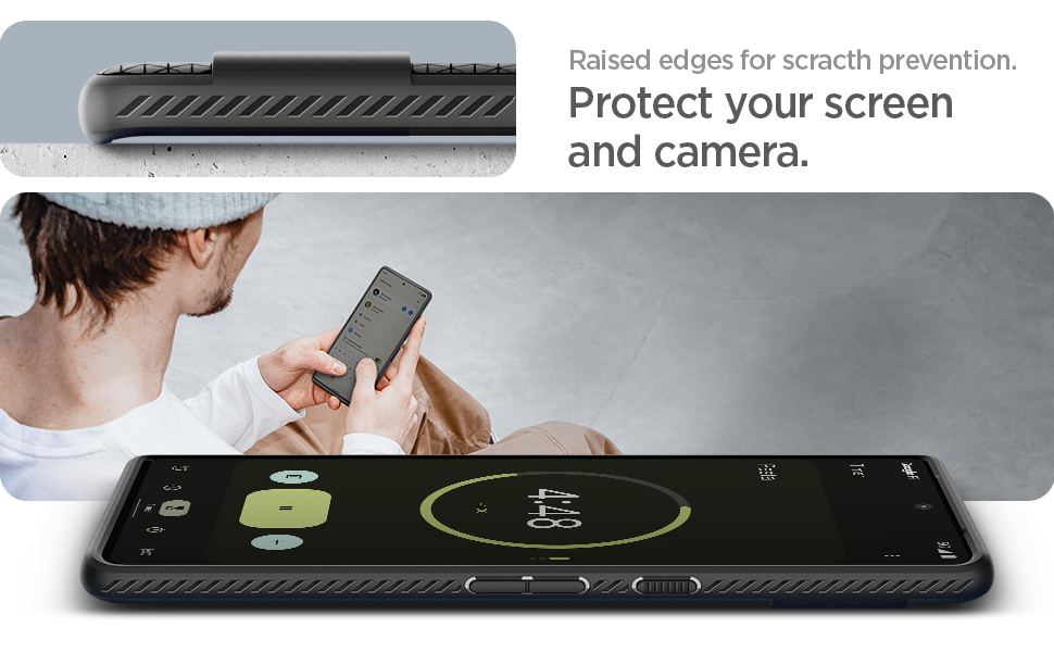 • Raised edges for screen and camera protection.