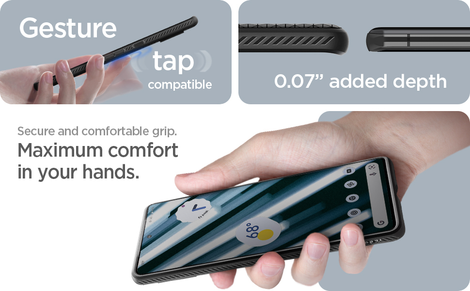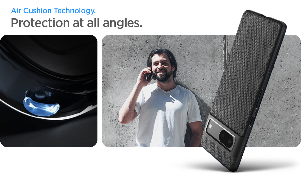 Go with the flow. Liquid Air brings a refreshing look to your new Pixel. Its geometric design provides protection and grip at all angles. Feel comfortable holding your device without all the extra bulk. The perfect grip meets the right amount of drip.