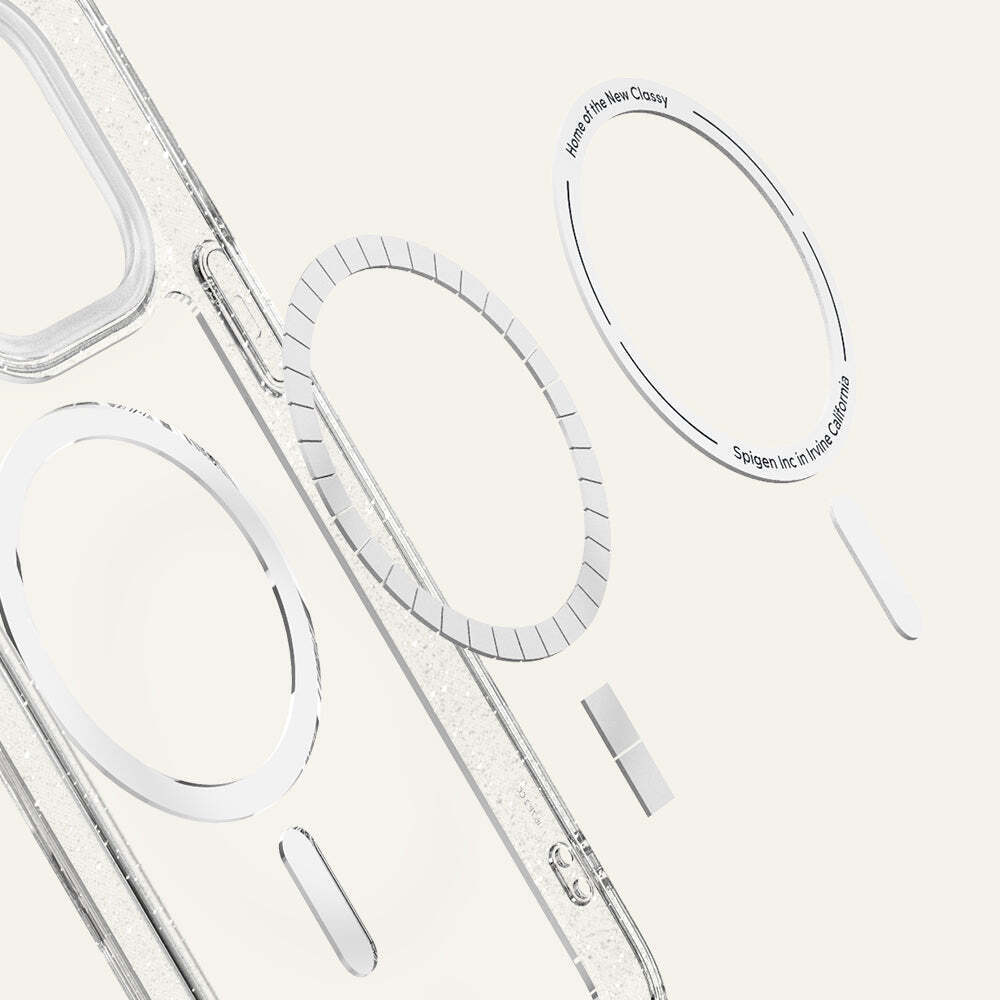 - Clear case with glitter TPU borders and visible built-in magnet compatible with MagSafe and wireless charging for faster and easier charging.