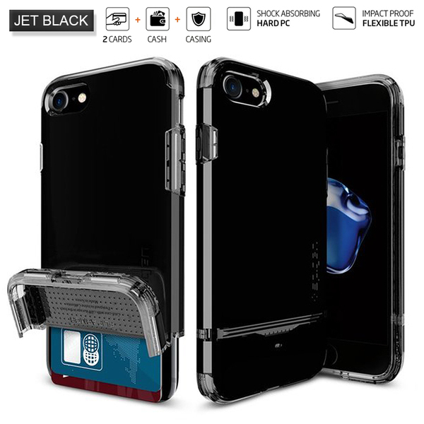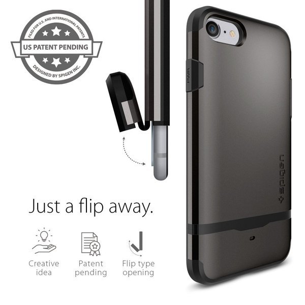 Tired of carrying your phone and wallet? The latest addition to the Spigen Armor series, Spigen Flip Armor, allows you to simplify your new shopping needs without a trace. The particular design of Flip Armor bears a signature band (located on its lower half), which is the secret to making this wallet case discreet and so slim! The band’s flexibility additionally provides easy application. The inner portion of the TPU is sculpted to hold up to two cards and lined with our latest shock-absorbing technology found in our triangle-patterned interior.