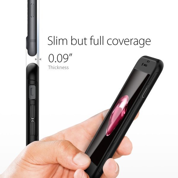 Slim. Streamline. Sleek. The Thin Fit 360 is tailored to encase your iPhone 7 with premium 360 coverage with ultra-thinness. The secret to its durable yet 0.76cm thickness is that it is constructed of hard PC shells. Its split-type body was precisely engineered to join together and combat everyday scratches. Tempered glass protection keeps the screen protected without having to sacrifice an inch of 3D-Touch compatibility and screen clarity. Armor up with the slim Thin Fit 360 to enjoy optimum coverage with unbeatable thinness.