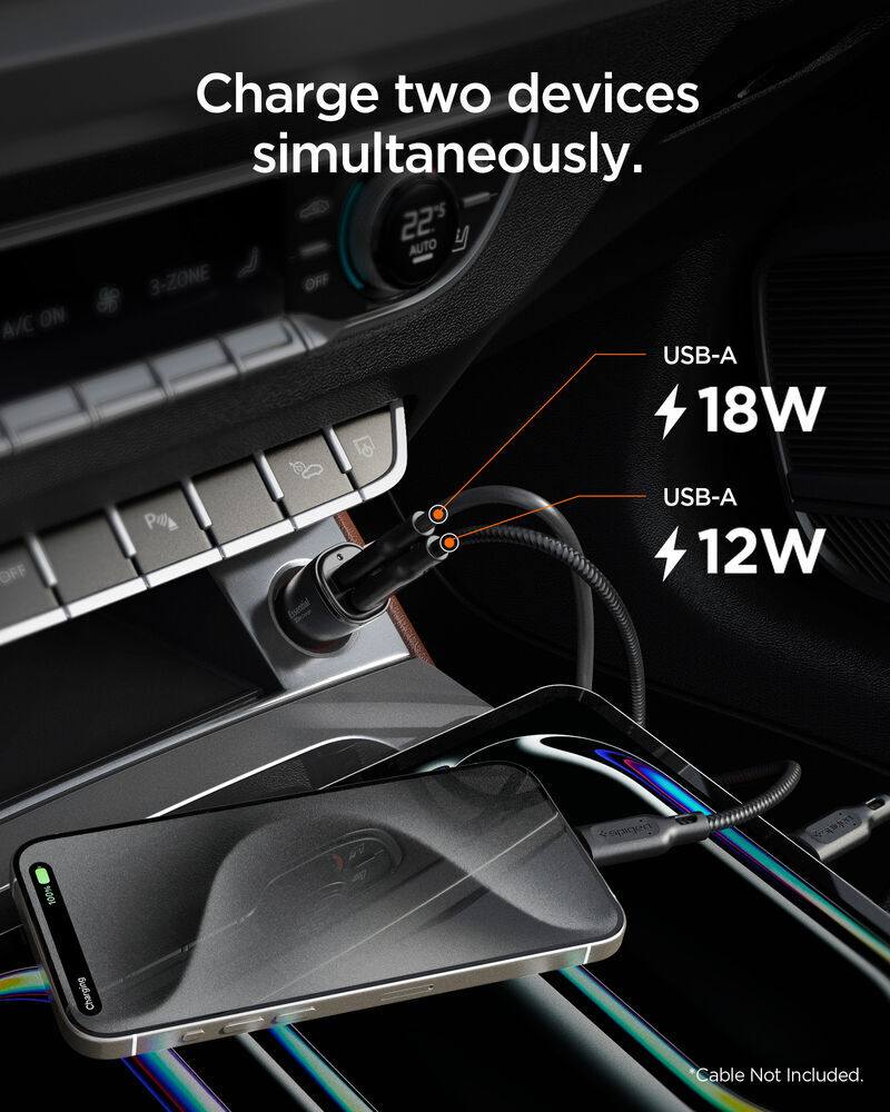 SPIGEN Essential USB-A 30W EV302 2 Ports Car Charger for Universal [Colour:Black]
