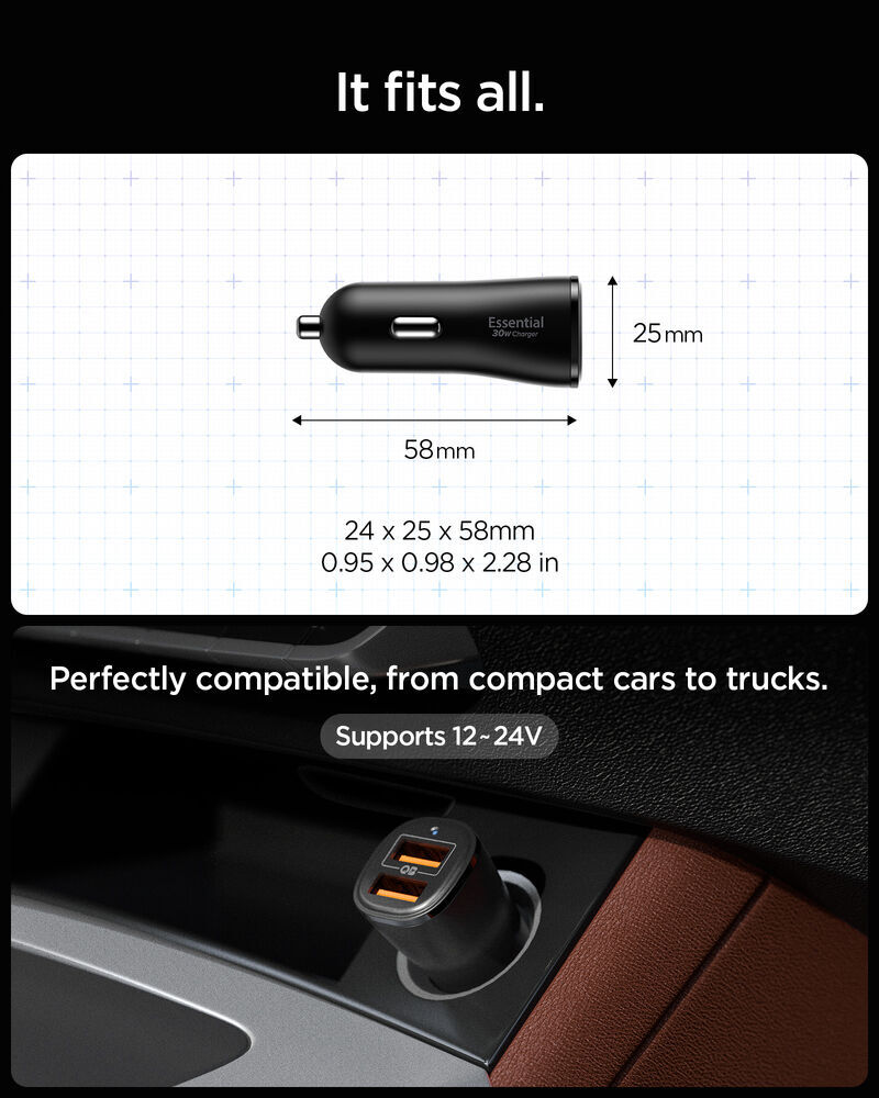 | SPIGEN Essential USB-A 30W EV302 2 Ports Car Charger for Universal | 1PC |
