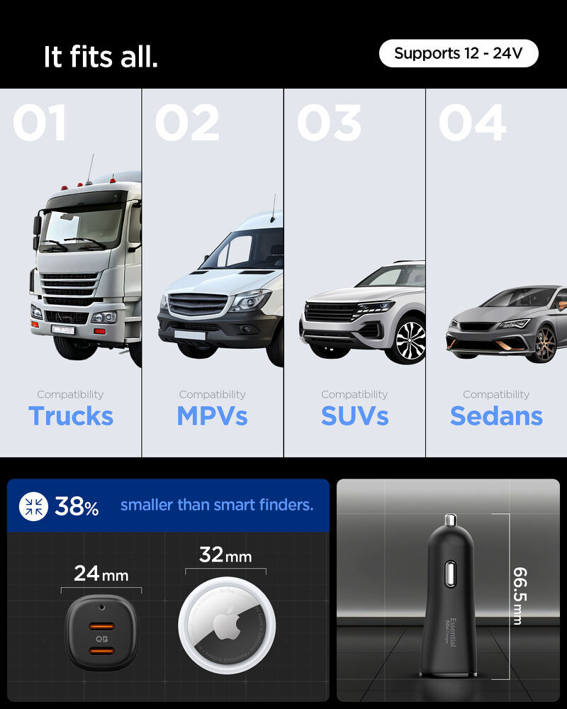 | SPIGEN Essential USB-C 50W EV502 2 Ports Car Charger for Universal | 1PC |