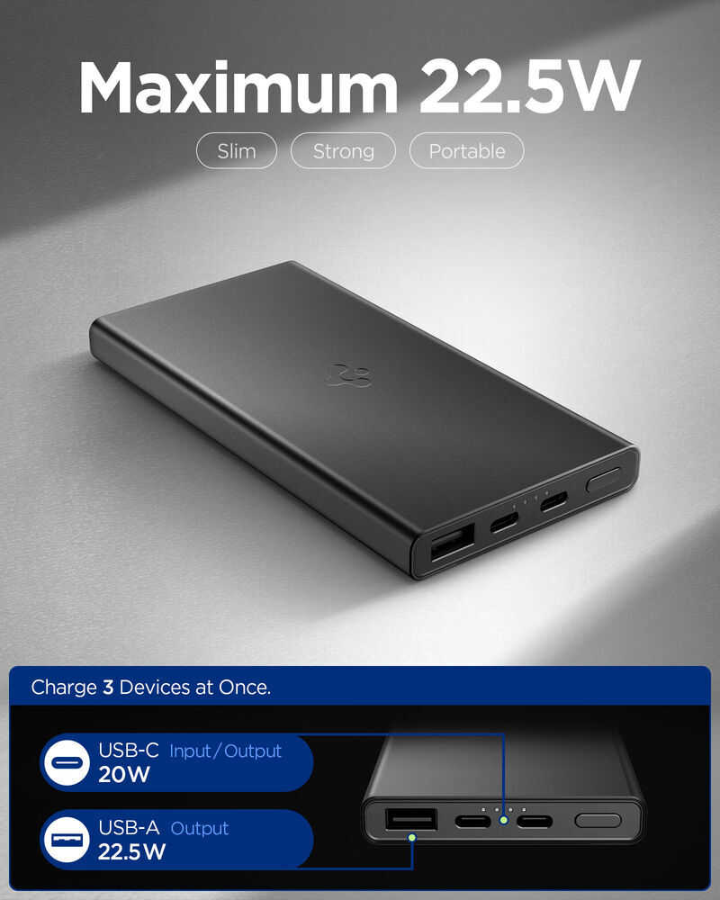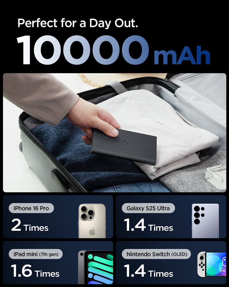 SPIGEN Essential QB USB-C USB-A 10000mAh 22.5W EA2210 3 Ports Power Bank for Universal [Colour:Black]