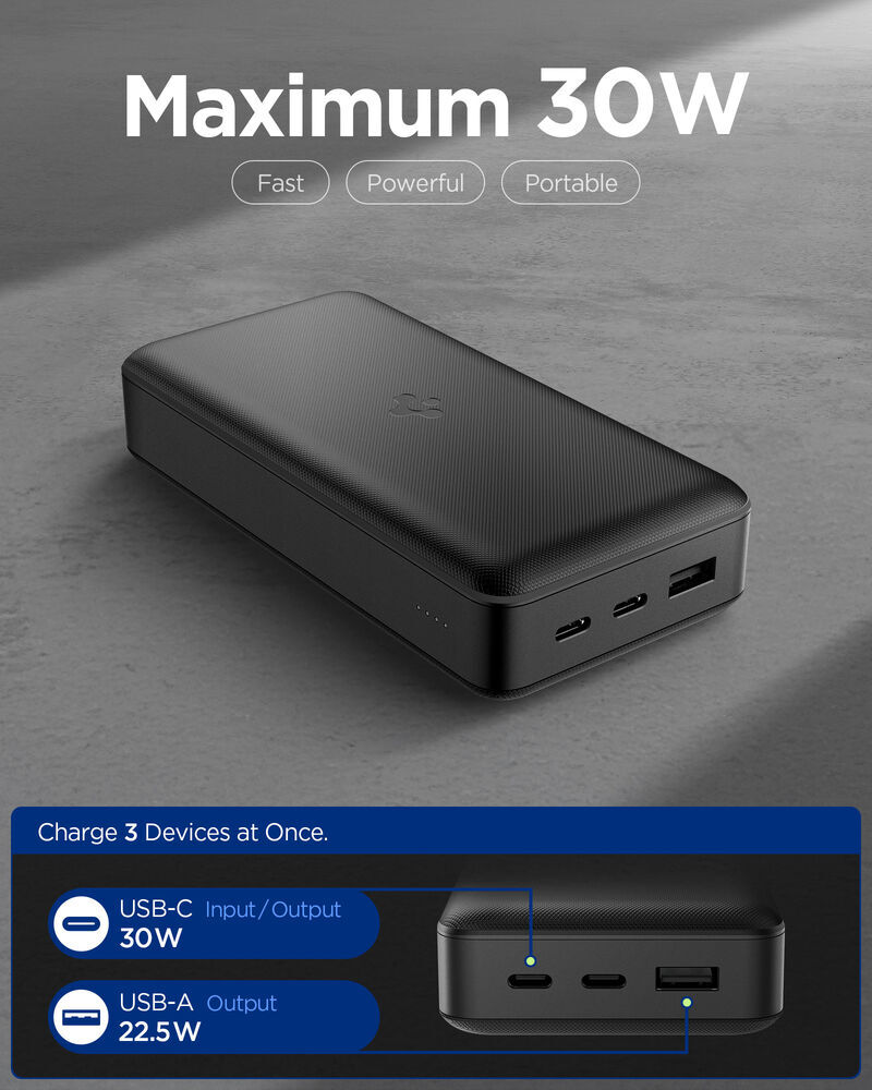 - Equipped with 3ports - Port 1 : USB-C 30W, Port 2 : USB-C 30W, Port 3 : USB-A 22.5W