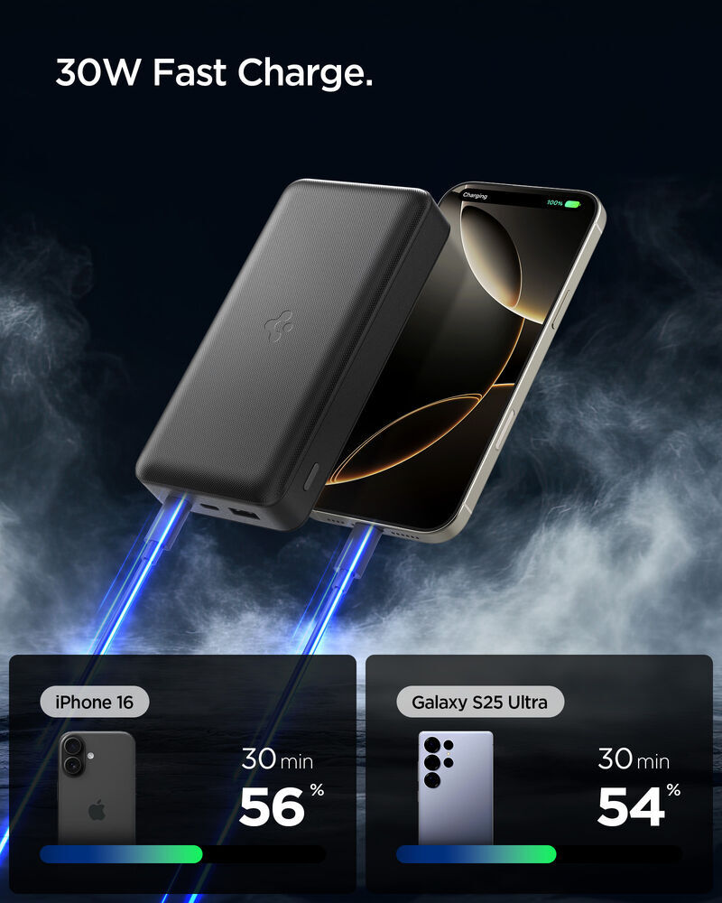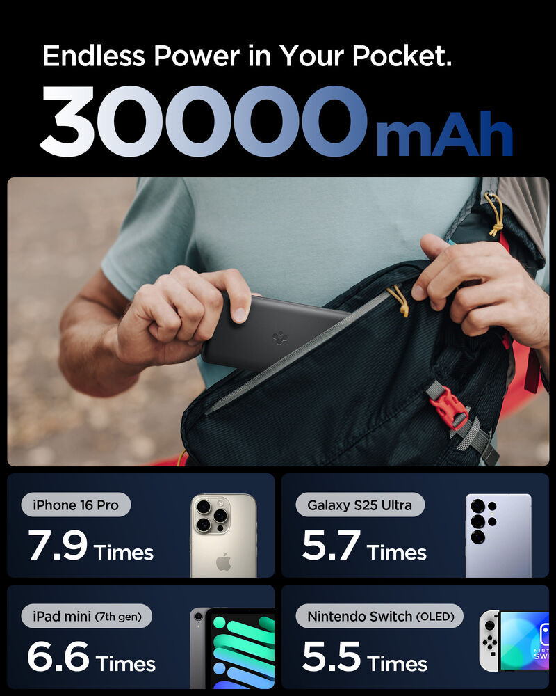 SPIGEN Essential QB USB-C USB-A 30000mAh 30W EA3030 3 Ports Power Bank for Universal [Colour:Black]