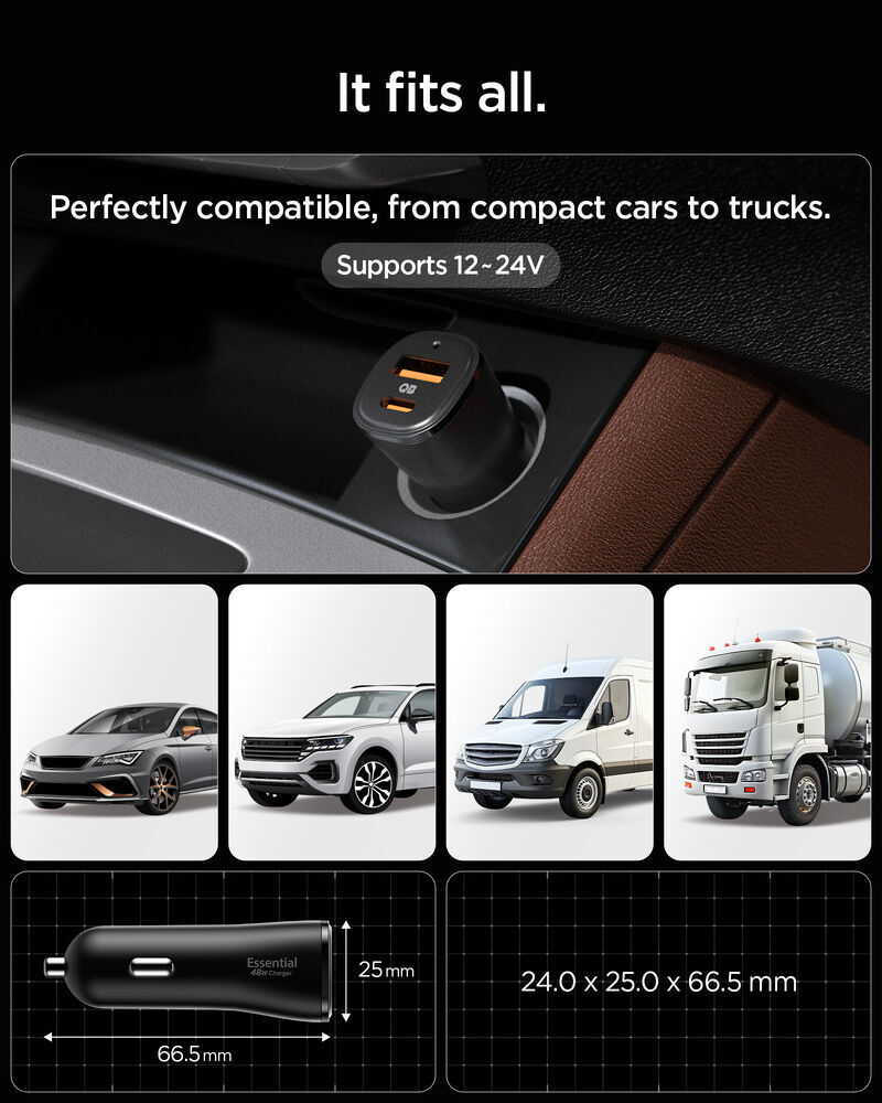 | SPIGEN Essential USB-C USB-A 48W EV482 2 Ports Car Charger for Universal | 1PC |