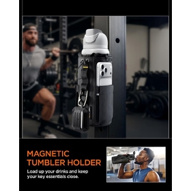 Introducing the ultimate gym companion for your tumbler or bottle. This versatile holder features a powerful magnet system for hands-free convenience, a wide capacity fit for various bottle sizes, and smart storage solutions all wrapped in a rugged, weather-ready design. Perfect for workouts, outdoor activities, and everyday carry. *Bottle and Device are not included. Best use for 30oz(900ml) bottles. Fit sizes from 20oz(600ml)- 40oz(1200ml).