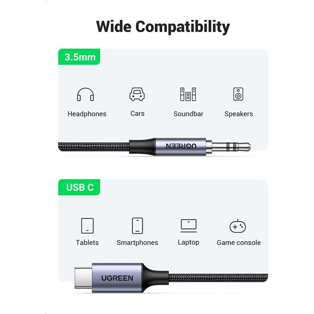- Plug and play: UGREEN USB C to AUX Cable can easily connect your Type C devices to car stereo, speakers, headphones or any device with 3.5mm audio jack or Aux-in port. No drivers or apps required, just easily plug and play. Let the music never stop.
