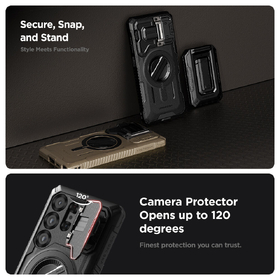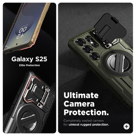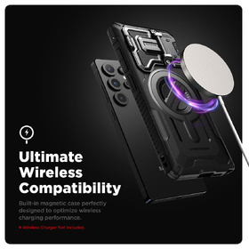 Quality First - Built from the highest quality material. Better Protection - Complete all around protection on your cameras and front screen with firmly raised edges. Functionality - Compatible with Magsafe Accessaries. Camera Cover - Built-in camera protector guarantees the utmost protection from scratches and provides a multi-functional kickstand. Compatible with wireless charging and MagSafe accessories for Galaxy S25 Ultra only. * Device is not included.